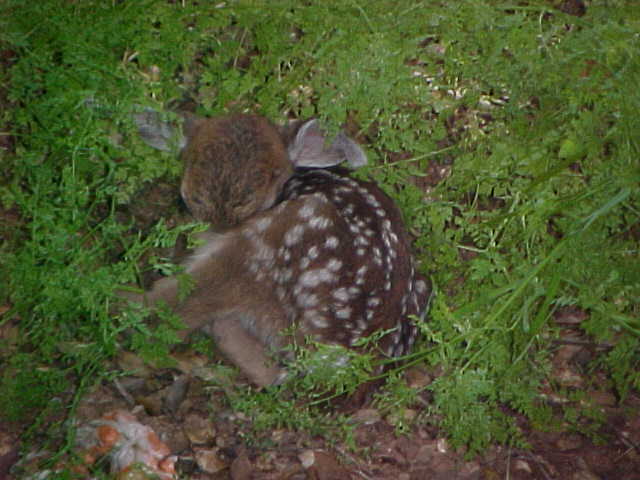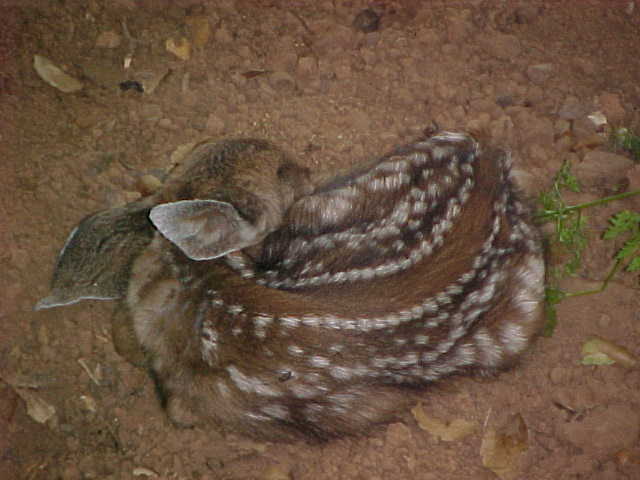 | 2. The second little deer was fast asleep a few feet away from the first, perhaps they lay just where they were 'dropped'. They were dry and oh so cute. | ||